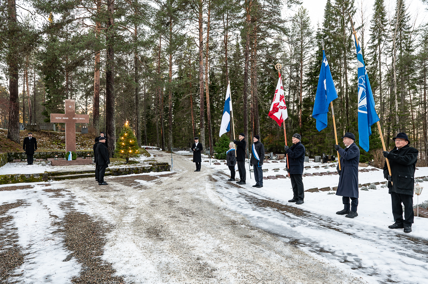 Jumalanpalveluksen jälkeen kirkkoherra Heikki Nissinen lähetti seppelpartion sankarihautausmaalle, missä sankariristille laskettiin kunnan, seurakunnan ja maanpuolustusjärjestöjen seppele sankariristille. Seppeleen laski Jani Komulainen yhdessä Kalevi Valtasen kanssa.